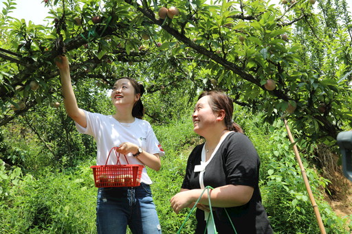 7月19日,浙江省紹興市、嵊州市郵政分公司兩級郵政惠農電商團隊把直播間搬到了嵊州市金庭鎮青山頭村桃形李基地,通過直播帶貨的方式,幫助當地桃形李種植戶開展“線上直播+線下團購”銷售。當天,累計銷售桃形李2000多單,銷售量超過5000公斤。今年以來,嵊州市分公司克服疫情影響,積極為當地農民合作社提供“直播+寄遞+電商”多維度服務,助力當地農產品銷售。圖為郵政工作人員與當地專業合作社負責人一起在做桃形李采摘的直播。□俞勁松 王剛 攝影報道