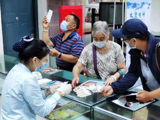 7月11日,江蘇省徐州市淮東集郵營業廳內,郵迷正在購買《故宮博物院(二)》特種郵票?! 踔x安吉 攝影報道