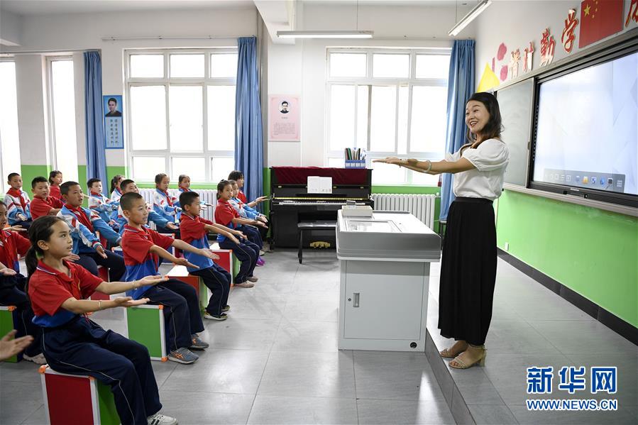 寧夏吳忠市紅寺堡區(qū)紅寺堡中心小學(xué)學(xué)生在上音樂(lè)課(7月3日攝)。 新華社記者 馮開華 攝