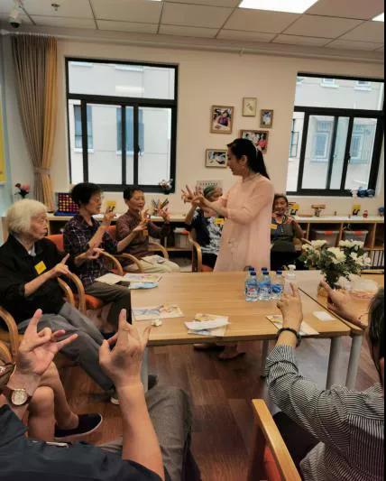“蘭花指,蘭花掌,蘭花拳。好,加大難度,一個手蘭花指,一個手蘭花掌……”在知樂認知癥家庭支持中心,昆曲閨門旦演員趙津羽正在向認知障礙癥老人指導簡單的手指動作。