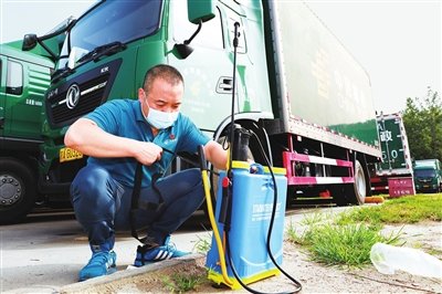 近期,北京進入了高溫模式,劉春喜每次按照標準流程完成車輛消毒工作后,都會熱得滿頭大汗。□康濤 攝