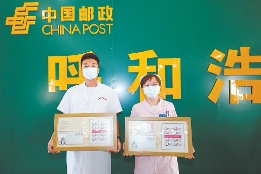 8月19日上午,內蒙古自治區郵政分公司《眾志成城 抗擊疫情》特別發行郵票紀念郵折捐贈儀式在呼和浩特市舉行,全區1136名奮戰在新冠肺炎抗疫一線,特別是849名援鄂醫務工作者獲贈紀念郵折。