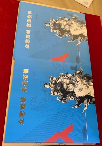 贈送的《眾志成城 抗擊疫情》郵票郵折將支援湖北的醫療隊員抗疫照片制成了肖像郵票紀念張,匯同一整版抗疫郵票和絹質首日封制作成精美的郵折,贈送給奮戰在抗擊疫情一線的醫務工作者,表達對他們勇敢、堅強、奉獻精神的敬佩之情。每個郵折都是唯一編碼,具有特殊的紀念意義。