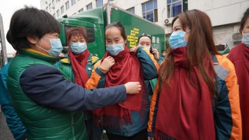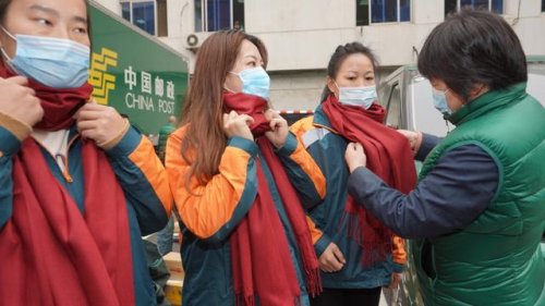 今天的北京,天空陰沉,氣溫低迷,正在“雙11”投遞一線(xiàn)奮戰(zhàn)的郵政小哥們卻正忙得熱火朝天,一時(shí)間竟忘記了天氣的寒冷。直到一條紅圍巾輕輕地搭在了自己肩上,他們才意識(shí)到雙手已經(jīng)冰涼。