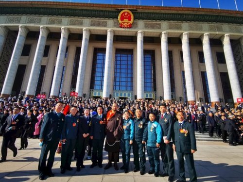 部分郵政全國(guó)勞模接受表彰后在人民大會(huì)堂前合影留念。