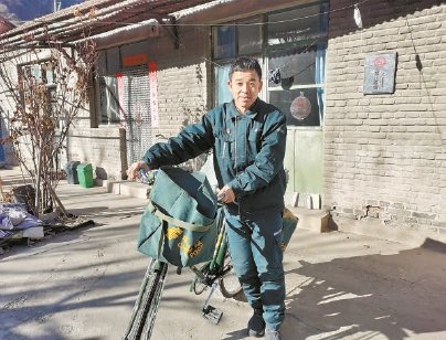 分揀之后,王懷敬出發(fā)了。每天,他要完成周邊4個大村15個投遞點(diǎn)、200多戶村民的郵件收發(fā)工作。“村里的路不好走,到處都是高坡,電動車怕走著走著就沒電了,還是自行車靠譜,騎不動了,就推著走。”27年來,王懷敬送件,靠的是一輛自行車和兩個挎包。