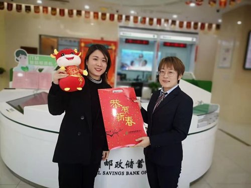 郵儲(chǔ)銀行山東省分行在牛年春節(jié)即將到來之際,為客戶送上暖暖的節(jié)日祝福。圖為淄博市分行在廳堂舉辦"金牛送福”抽獎(jiǎng)活動(dòng),為來辦業(yè)務(wù)的客戶派送“小金牛”和福字對(duì)聯(lián)禮包,營(yíng)造良好的節(jié)日氛圍。