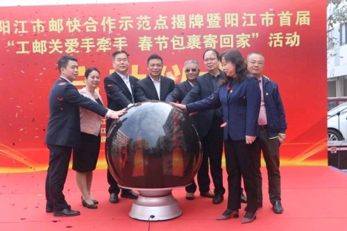 1月27日,陽江市首個“郵快合作”示范點在廣東廣青金屬科技有限公司正式揭牌成立,有效解決該企業4000多名員工收寄快遞難題?;顒赢斕欤柦锌偣舱絾釉撌惺讓谩肮む]關愛手牽手,春節包裹寄回家”活動,為企業異地務工人員給遠在家鄉的親人寄去一份心意和關愛,提高他們留在陽江過年的幸福感和獲得感。