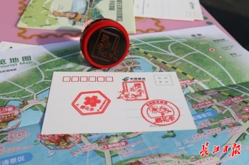 另外,櫻花郵局專(zhuān)門(mén)打造了東湖風(fēng)景紀(jì)念戳、賞櫻地標(biāo)戳等18款專(zhuān)屬紀(jì)念戳。賞櫻期間,游客可在櫻花郵局領(lǐng)取一張手繪地圖,集齊5處指定地標(biāo)的紀(jì)念戳,即可領(lǐng)取一份專(zhuān)屬櫻花禮品。
