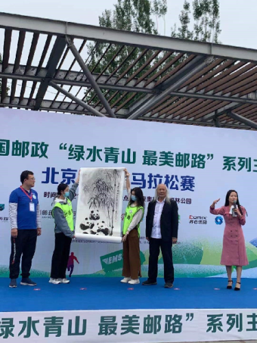 16日,2021年中國郵政“綠水青山最美郵路”系列主題賽北京站——“逐夢冬奧 相約北京”半程馬拉松賽,暨“祝福冬奧”明信片首發(fā)式在北京奧林匹克森林公園舉辦。活動(dòng)現(xiàn)場,“祝福冬奧”明信片原畫作者楊竹向體育郵局捐贈(zèng)畫作。