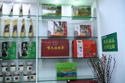 來到哈達鋪紅軍長征紀念館正門旁的哈達鋪紅色郵局,展柜上陳列的物品讓人挑花了眼。不僅有哈達鋪紀念明信片、大公報、黨史黨情圖書等,還有宕昌縣本地特產中藥材、點心、香菇醬等產品。每天都有上百名游客到此,對關于長征題材的郵票、明信片和首日封等郵品產生了濃濃的興趣。一名來自內蒙古的游客一進來就被展柜上的明信片吸引得移不開眼,他選購了一枚明信片,高興地說道:“我要把明信片寄回去,留下這份珍貴的哈達鋪記憶。”與此同時,主題郵局內一場線上直播活動正在如火如荼地進行中。