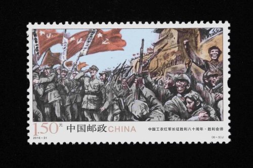 2016年10月22日,《中國工農紅軍長征勝利八十周年》紀念郵票發行,6枚郵票圖案分別為:長征出發、遵義會議、四渡赤水、過雪山草地、勝利會師、緬懷先烈不忘初心走好新的長征路。