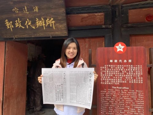 非常榮幸能夠參加“尋跡紅色郵政 傳承紅色基因”甘肅段全媒體采訪報(bào)道,從臘子口到哈達(dá)鋪再到會(huì)寧,追尋偉大的革命歷程、感悟偉大的長(zhǎng)征精神。哈達(dá)鋪鎮(zhèn),一間小小的郵政代辦所,一張報(bào)紙《大公報(bào)》,為長(zhǎng)征中的紅軍指明了前進(jìn)的方向——到陜北去,這一決定改變了革命發(fā)展的趨勢(shì),改變了中國(guó)的命運(yùn)。我要認(rèn)真學(xué)習(xí)紅軍長(zhǎng)征精神,立足崗位,勇于挑戰(zhàn)自我,攻堅(jiān)克難,不負(fù)韶華,為寄遞事業(yè)發(fā)展貢獻(xiàn)青春力量。