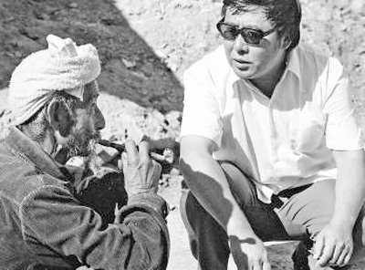 路遙(右)在陜北農村走訪。新華社記者 姚宗儀攝