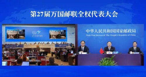 圖為中國代表團在線出席第27屆萬國郵聯代表大會。