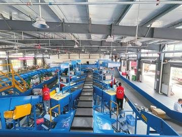 上千平方米面積的全自動分揀中心,安裝了全自動分揀設備,快遞、包裹被精準地投遞到有編號的小格子內。“每個小格子代表一個村,商品在這里可精準區分到村。”江安縣城鄉物流公司經理王亮蘭說,這個縣級農村物流中心整合集中了多家快遞企業,大家集中分發,集約利用共同的配送渠道——貨運專線轉載、客運班線搭載、便民小客運配送,可高效分流貨物,每家還可節約成本20%。