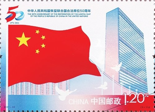 10月25日,中國郵政發行《中華人民共和國恢復聯合國合法席位50周年》紀念郵票一套1枚,全套郵票面值1.20元。郵票計劃發行數量為700萬套。