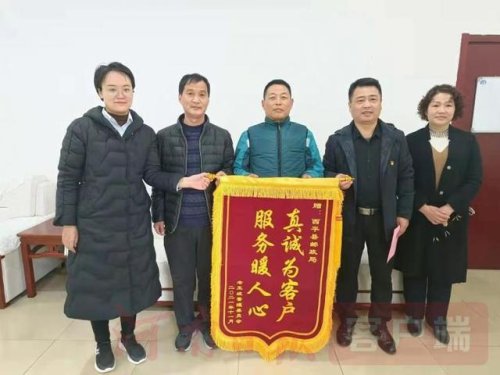 11月29日下午,西平縣老王坡管理委員會武裝部苗海民部長和辦公室劉琳主任將一面寫有“真誠為客戶,服務(wù)暖人心”的錦旗以及一封飽含深情的表揚信送到了西平縣郵政分公司,對西平郵政投遞員高祥同志三十年如一日,真誠服務(wù)投遞段道廣大客戶的事跡表達了由衷的贊揚,也真摯的感謝郵政公司培養(yǎng)出來的優(yōu)秀員工。