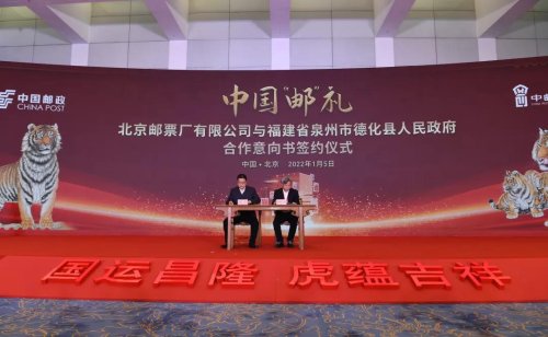 傳承經典文化,開放多元合作。頒獎儀式現場,中國郵政集團有限公司貴州省分公司、中國郵政集團有限公司郵政業務部、北京郵票廠有限公司代表,與貴州茅臺酒廠習酒有限責任公司、中國移動通信集團有限公司政企事業部、福建省泉州市德化縣人民政府代表簽訂合作協議。