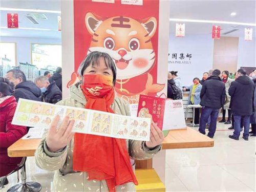 買(mǎi)到虎年生肖郵票的市民十分開(kāi)心。通訊員 黃倩 攝