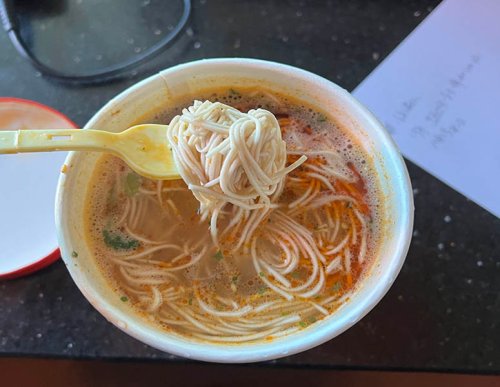 他從廚房里端出三桶熱乎乎的青稞泡面。“記者老師,趁熱,這路上能吃口熱乎飯不容易。”那一瞬,我充滿感動。我明白,青藏公路上,所有的食品、飲用水等物資都是長途配送過來的,一桶青稞泡面,也是“禮輕情意重”。我低下頭,認真吃了起來。只覺得,香!