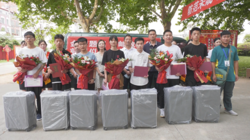 一大早,徐會超就懷揣著激動的心情趕到了郵政公司。消殺郵件后,徐會超與工作人員帶著鮮花與祝福和錄取通知書,來到了上蔡縣第一高級中學(xué)。在經(jīng)過雙證核實、簽字、拍照等一系列簽收手續(xù)后,徐會超鄭重地把清華大學(xué)、北京大學(xué)錄取通知書送到7位學(xué)子手中,工作人員為他們送上上蔡縣郵政分公司特地準備的拉桿箱和鮮花。上蔡郵政分公司總經(jīng)理翁斌、副總經(jīng)理原芳為考生們送去郵政了真摯的祝福。
