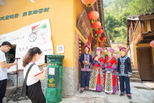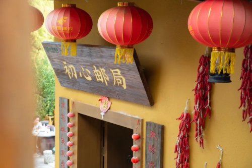 獨棟的房子,墻面裝飾著一個大信封,邊上寫著“先吃黃連苦 再享蜂蜜甜”的標語,這里即是游客們都愛拍照打卡的初心郵局。作為小院里的一抹獨特風景,初心郵局也成為當地研學線路的重要教學點。