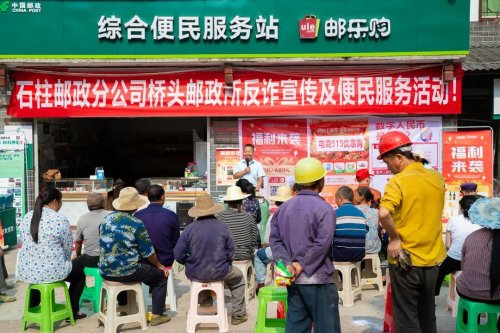 在七曜山中心支局局長董仕鑫的帶動下,村民們磕著瓜子,聽著換社???、郵樂優鮮團購等知識介紹,熱火朝天地搶答問題,笑聲伴著音樂飄進了風里。
