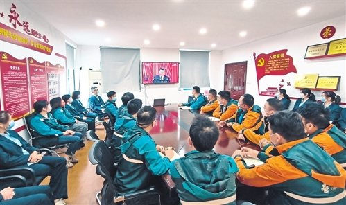 浙江省湖州市郵政分公司織里快包攬投部員工認(rèn)真收看黨的二十大開幕會(huì)直播。□錢云杰 攝影報(bào)道