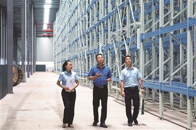 郵儲銀行客戶經(jīng)理實(shí)地走訪小微企業(yè),了解金融服務(wù)需求。