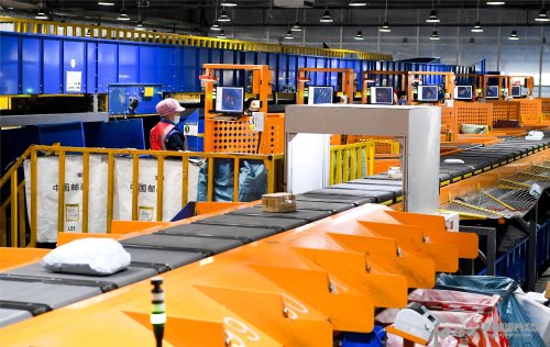 1月8日,中國郵政集團有限公司烏魯木齊郵區(qū)中心忙碌的自動分揀線。中國郵政烏魯木齊郵區(qū)中心陸航處理中心是新疆郵政進出口郵件的生產樞紐。1月1日-7日,共處理郵件305萬件,同比增長110%。郵區(qū)中心2023年“春節(jié)不打烊”,全力滿足節(jié)日期間商家、消費者寄遞需求。