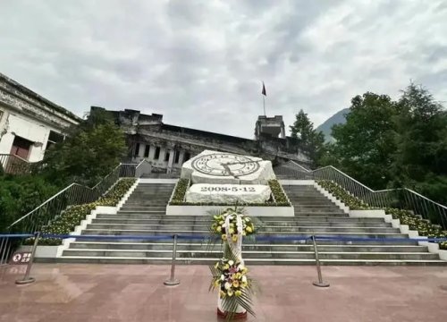 當天,在中央媒體“‘長征郵路’行”采訪調研活動中,記者跟隨采訪調研團一行30余人來到了汶川大地震遺址漩口中學,并在現場進行了祭悼儀式。