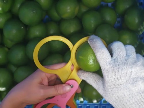 偌大的處理中心里,水果處理插上了智能化“翅膀”。一筐筐水果被送上智能分揀機(jī)器,按口徑大小從不同的格口被分揀出來后,再進(jìn)行打包裝箱。