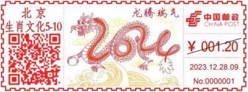 為迎接甲辰龍年,在生肖文化主題郵局即將踏入第四個(gè)年頭,特別推出“龍騰瑞氣”郵資機(jī)宣傳戳一枚,同圖文化日戳和美術(shù)封也同時(shí)亮相。據(jù)悉,此枚文化日戳為北京首枚龍題材的文化郵戳。