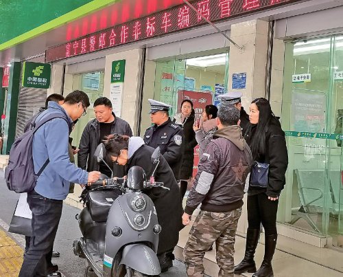 由于新國標(biāo)實施之后對電動自行車有了更嚴(yán)格的要求,為進一步保障群眾安全出行,逐步落實“非標(biāo)”車賦碼管理工作,2月28日,云南省富寧縣警郵合作“非標(biāo)”車輛編碼管理啟動儀式在富寧縣郵政分公司東風(fēng)路營業(yè)室舉行。富寧縣交警大隊車管所、縣郵政分公司、保險公司等單位工作人員向群眾宣傳講解“非標(biāo)”車賦碼管理工作,并組織辦理“非標(biāo)”車賦碼的車主們簽訂《富寧縣無牌機動車超標(biāo)機動車編碼登記管理道路交通安全責(zé)任承諾書》。圖為工作人員向群眾宣傳“非標(biāo)”車存在的安全隱患。