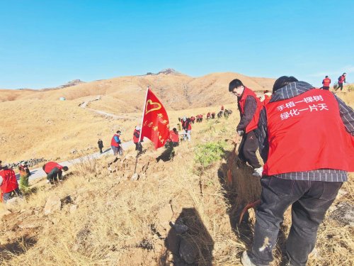 3月8日,河南省新鄉(xiāng)市郵政分公司組織20余名青年員工到衛(wèi)輝市獅豹頭鄉(xiāng)開展“手植一棵樹,綠化一片天”植樹活動。經(jīng)過兩個多小時的勞動,青年員工共栽植側(cè)柏苗百余株,為初春的山地增添了一抹新綠。