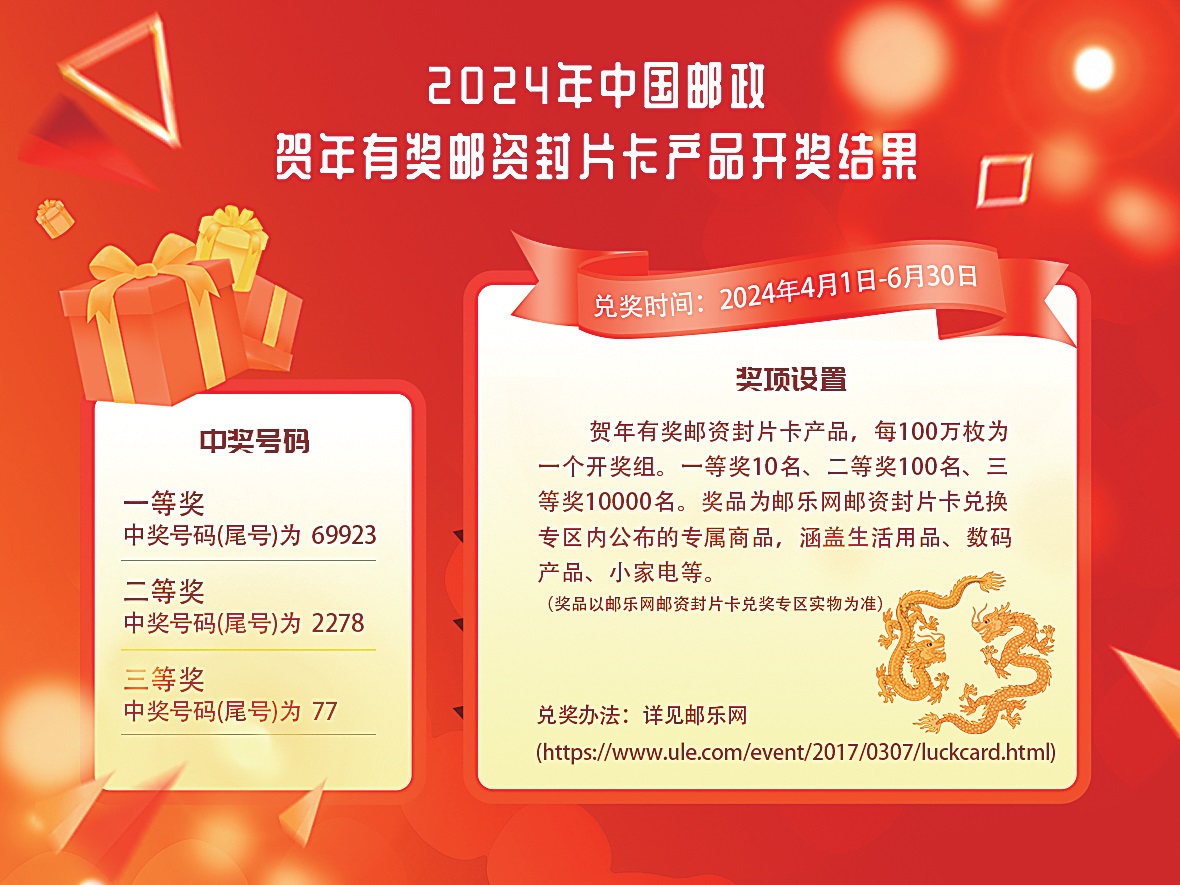 2024年中國(guó)郵政賀年有獎(jiǎng)郵資封片卡產(chǎn)品開獎(jiǎng)結(jié)果