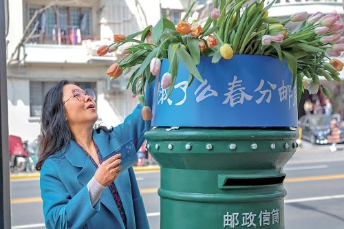 春分節(jié)氣,上海市郵政分公司武康大樓郵政所披上新裝,搖身一變成為“餓了么春分郵局”。在這里,上海郵政跨界聯(lián)動(dòng)餓了么平臺(tái)組織發(fā)起了“上海春日”明信片寄遞活動(dòng)。3月20日至21日,感興趣的朋友前往“春分郵局”免費(fèi)領(lǐng)取限量版“上海春日”明信片和花卉主題郵票,投入由綠色郵筒打造成的“郁金香花筒”即可寄給親友。