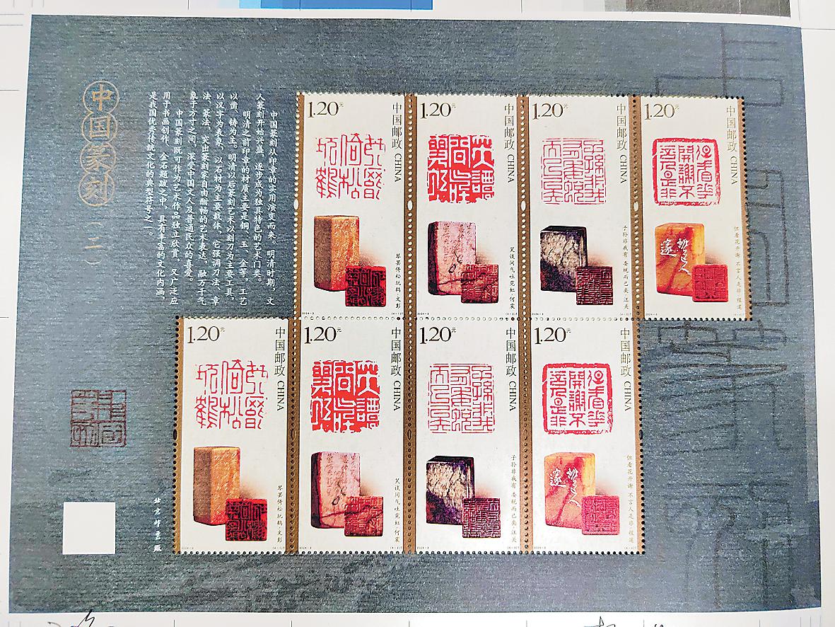 《中國(guó)篆刻(二)》特種郵票以獨(dú)特的印制工藝、特殊的油墨效果,加上細(xì)膩的宣紙質(zhì)地,讓集郵愛好者在觀賞郵票時(shí),感受到鈐印過程中“紋理盡合,似蟬蟲脫蛻”的獨(dú)特質(zhì)感。