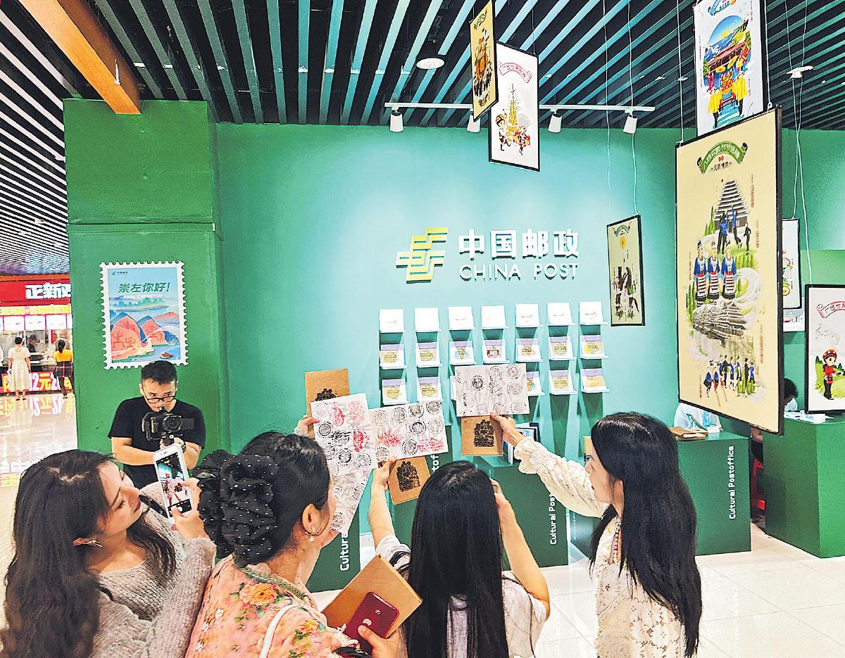 游客在非遺郵驛里領(lǐng)略“郵元素”,感受廣西非遺之美、民族文化之韻。 □莫樹森 攝