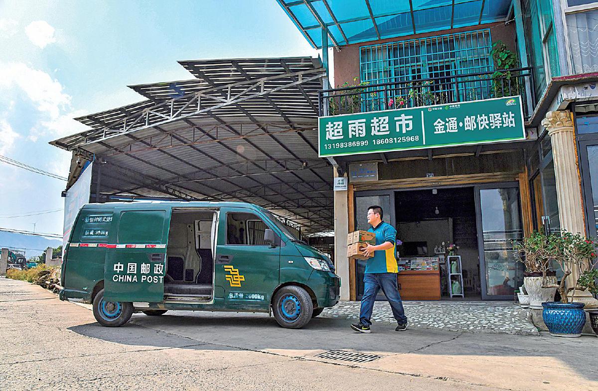 肖平非常高興,在郵政的幫助下,她的超市實(shí)現(xiàn)了提檔升級(jí),成為村級(jí)綜合便民服務(wù)站。店招、打印機(jī)、貨架都是郵政提供的,超市里也增添了不少郵政惠民商品。更重要的是,超市作為村里的郵件收寄點(diǎn),取郵件和寄物品的村民越來(lái)越多。來(lái)自全國(guó)各地的郵件在這里集散,也匯聚起源源不斷的客流。