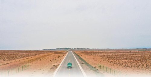 在從明水村返程的郵路上,在馬鬃山的落日與晚霞中,路邊一株株芨芨草、駱駝刺格外挺拔,迎風(fēng)抖動(dòng)。一輛在風(fēng)沙中疾馳的綠色郵車,配上駕駛室里橙衣綠褲、英姿颯爽的“牡丹花”,成就了瀚漠中的最美風(fēng)景。