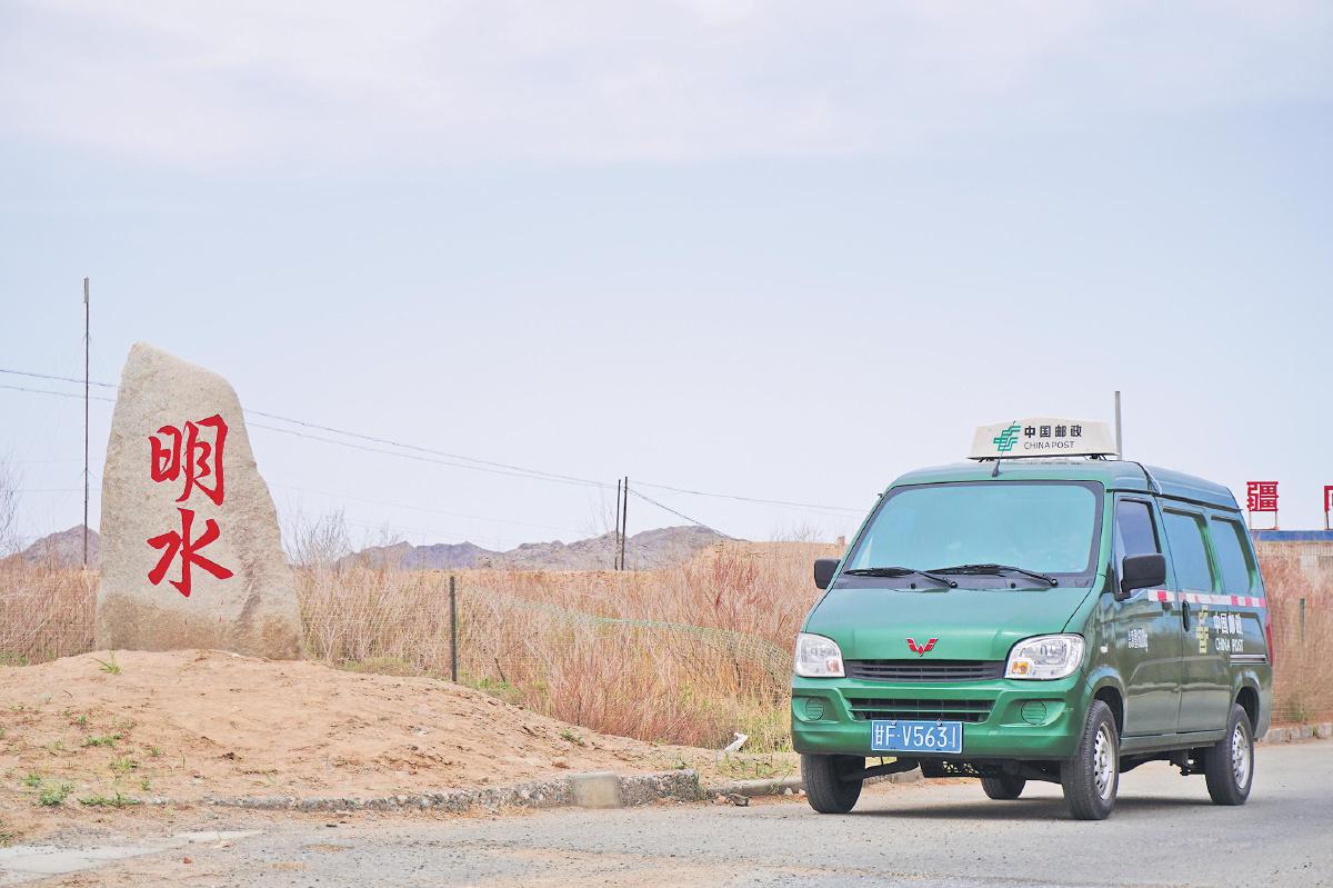 郵車抵達(dá)甘肅省離邊境最近的抵邊村——明水村。