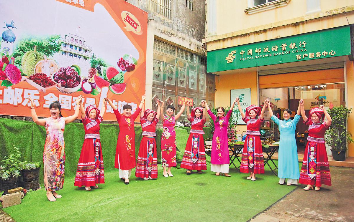 “朋友請(qǐng)到憑祥來(lái),火紅的木棉為你開。這里有雄偉的友誼關(guān),這里有富饒的邊寨,這里是祖國(guó)開放的大門……”6月5日中午,采訪組沿著友誼鎮(zhèn)的邊境郵路一路前行,還沒到鎮(zhèn)上的弄懷營(yíng)業(yè)所,就聽到了陣陣歡歌笑語(yǔ)。