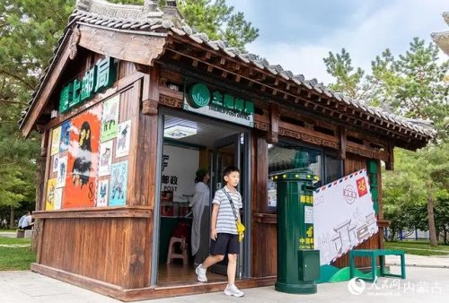 6月18日,來自福建的游客從呼和浩特市玉泉區(qū)塞上老街旅游休閑街區(qū)“塞上主題郵局”內(nèi)走出。