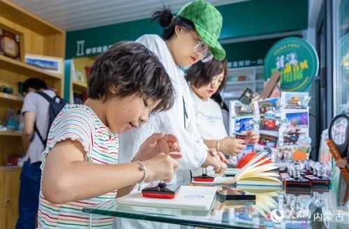 6月18日,游客在呼和浩特市玉泉區(qū)塞上老街旅游休閑街區(qū)“塞上主題郵局”內(nèi)集章打卡,珍藏“獨(dú)家記憶”。