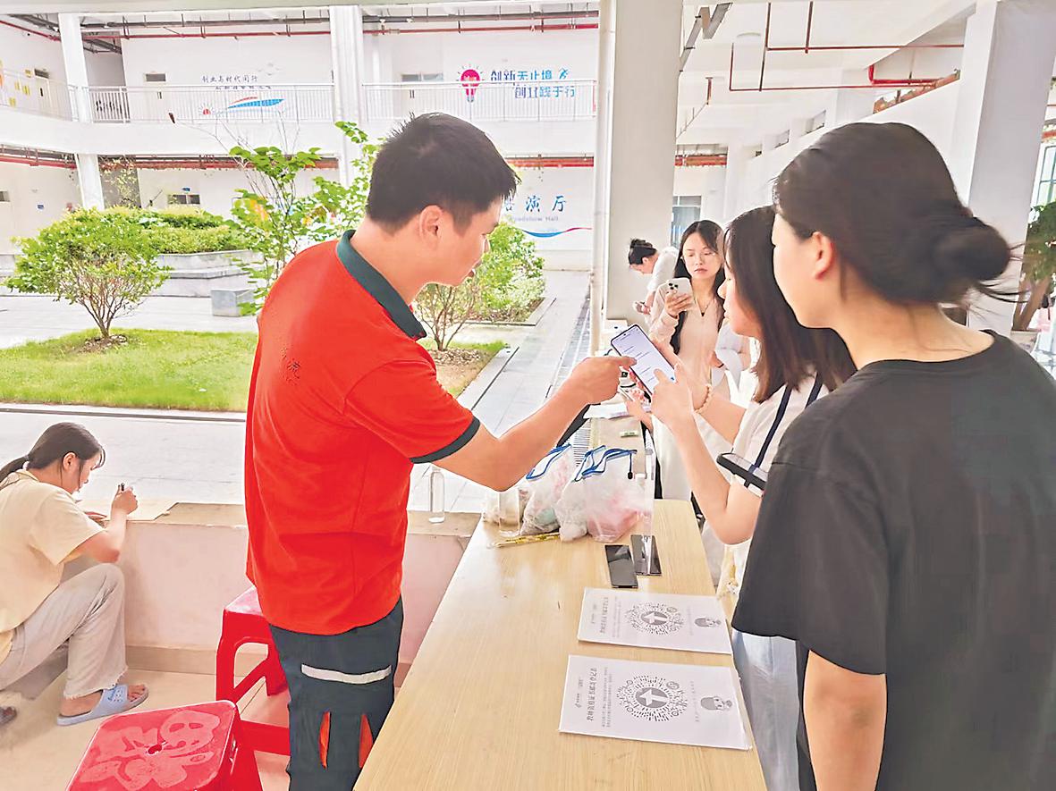 近日,江西省宜春市袁州區郵政分公司員工深入校園,為畢業生輕松返家提供方便。有的畢業生還通過郵政辦理了教師資格證書郵寄業務,實現了領取教師資格證“零次跑”?!鹾哿帷⊥跚佟z影報道