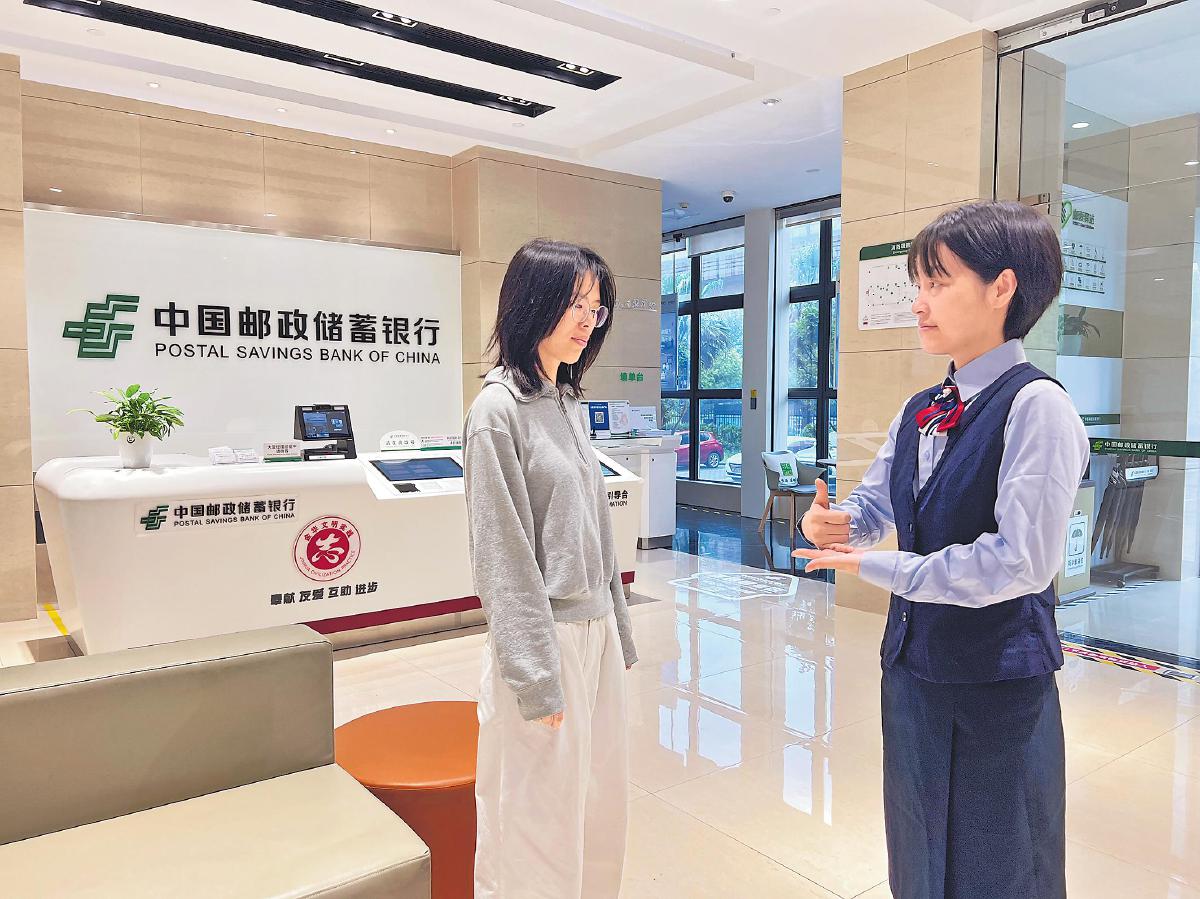 去年10月,有兩位聽障客戶來到網(wǎng)點辦理儲蓄卡掛失。那天正好是包秦琳值班,她用準確熟練的手語為客戶服務(wù)。看到包秦琳會手語,客戶原本焦慮的情緒緩解了許多。包秦琳不僅快速幫助客戶辦理完掛失補卡,還教會他們使用手機銀行辦理業(yè)務(wù)。臨走時,客戶用手語稱贊道:“謝謝,你的服務(wù)真棒,郵儲銀行真棒!”在包秦琳的帶動下,浙江省分行已建立了一支20余人的手語專員隊伍,他們每天堅持練習(xí)銀行常用手語,讓更多特殊客戶也能享受到安全、便捷、暖心的金融服務(wù)。