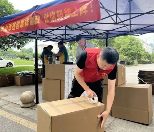 考慮到在校學(xué)生對學(xué)校和畢業(yè)生的情況都更熟悉,今年在郵校雙方合作基礎(chǔ)上,徐州郵政與學(xué)生會強(qiáng)化聯(lián)系,在駐點收寄期間,提供社會實踐名額,協(xié)助郵政人員進(jìn)行校園包裹宣傳引導(dǎo),拉近服務(wù)距離,提升收寄效率。據(jù)徐州郵政校園寄遞負(fù)責(zé)人楊兆清介紹,他們在此基礎(chǔ)上創(chuàng)新了郵校“1+1”駐點服務(wù)模式,即在每棟宿舍樓下安排1名郵政人員和1名學(xué)校的實習(xí)生,提供各類咨詢和搬運服務(wù)等。