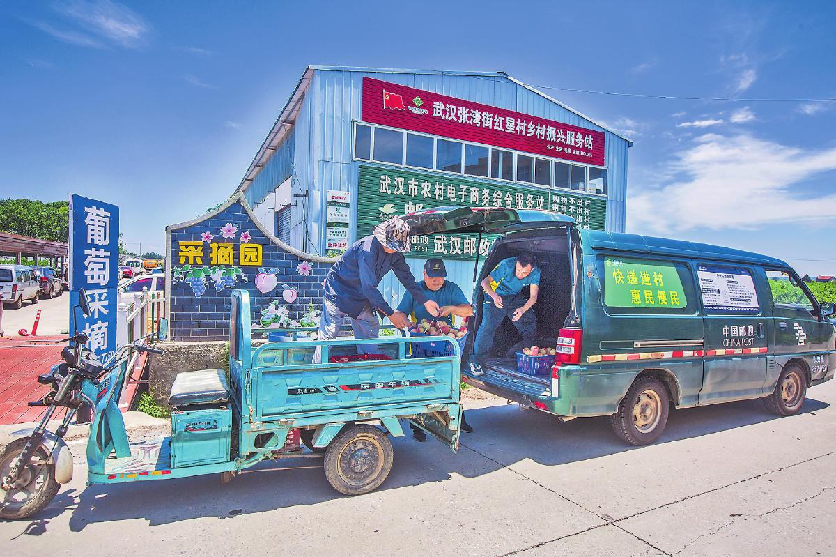 在鮮桃銷售旺季,湖北省武漢市蔡甸區郵政分公司通過社區團購以及郵政網點、村級綜合便民服務站展銷等多種方式組織訂單,全面助力當地專業合作社的鮮桃銷售。該分公司指定專人對接合作社電商運營團隊,組織寄遞服務專班,實行專班專人分揀、專車物流配送、訂單即時跟蹤,及時將鮮桃送達客戶手中。截至7月底,蔡甸區分公司開展電商直播6場、社區團購15場,助農銷售額達32萬元。